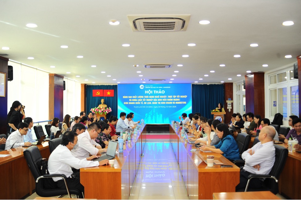 Sáng ngày 24/10/2025, Trường Đại học Tài chính – Marketing (UFM) đã tổ chức Hội thảo “Nâng cao chất lượng thực hành nghề nghiệp, thực tập tốt nghiệp và khóa luận tốt nghiệp của sinh viên nhóm ngành Kinh doanh quốc tế, Du lịch, Quản trị kinh doanh và Marketing”, do Khoa Thương mại và Du lịch, Khoa Quản trị kinh doanh và Khoa Marketing phối hợp tổ chức.